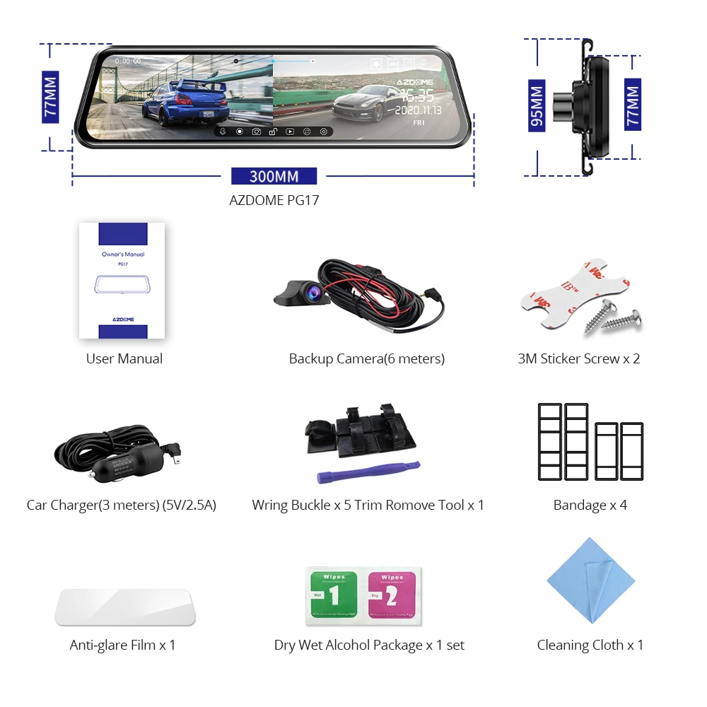 The IPS screen offers a touch-screen display that is easy to use while driving for a faster response to situations that may arise. The cam also comes with a backup camera for parking assistance, as well as loop recording and G-sensor technology