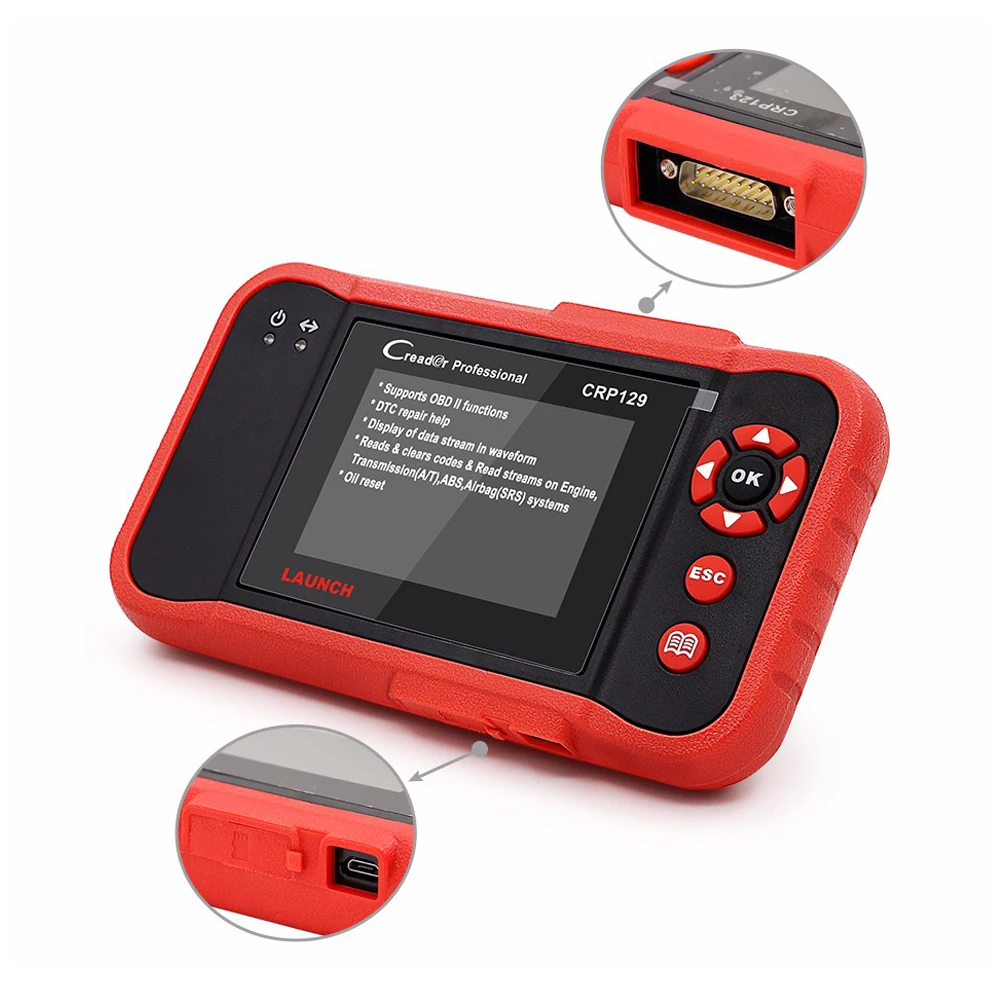 This is the new model of code reader from LAUNCH. This unit combines features from the CRP123 and the CResetter II oil lamp reset tool. The user will have access to many features, such as parking brake release, steering angle reset, and service reminder reset. All in all, this unit is designed to handle four separate systems – transmission, engine, SRS, and ABS.